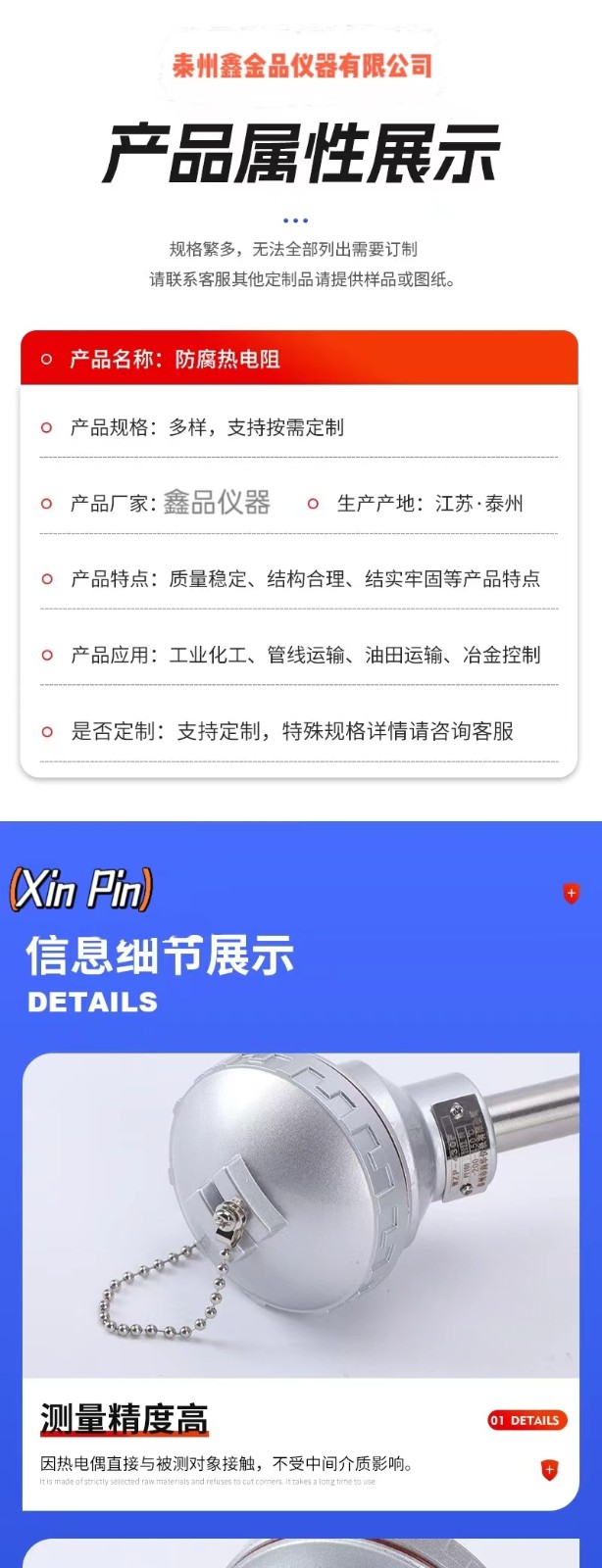 防腐熱電阻 溫度傳感器WZP-430F 用于石油化工各種腐蝕性介質(zhì)中測(cè) 長(zhǎng)度 300mm